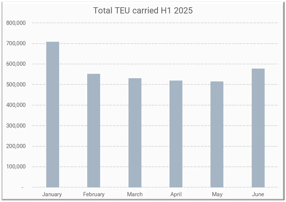 Figure 3: Total TEU transported in China to the U.S. direct voyages, H1 2025